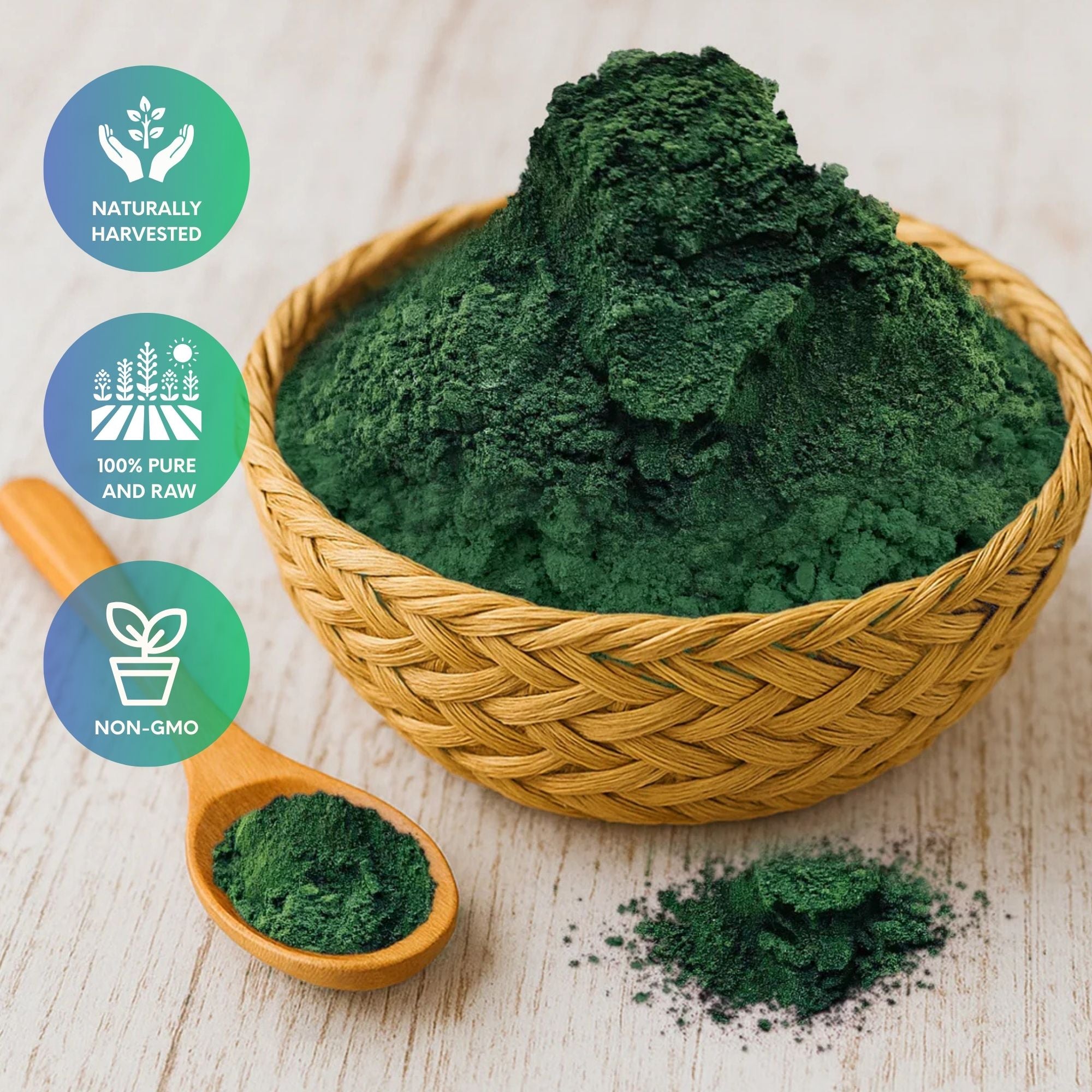 - Plant-Based Protein Power – Over 35% protein with essential amino acids in microalgae for muscle repair and energy.
